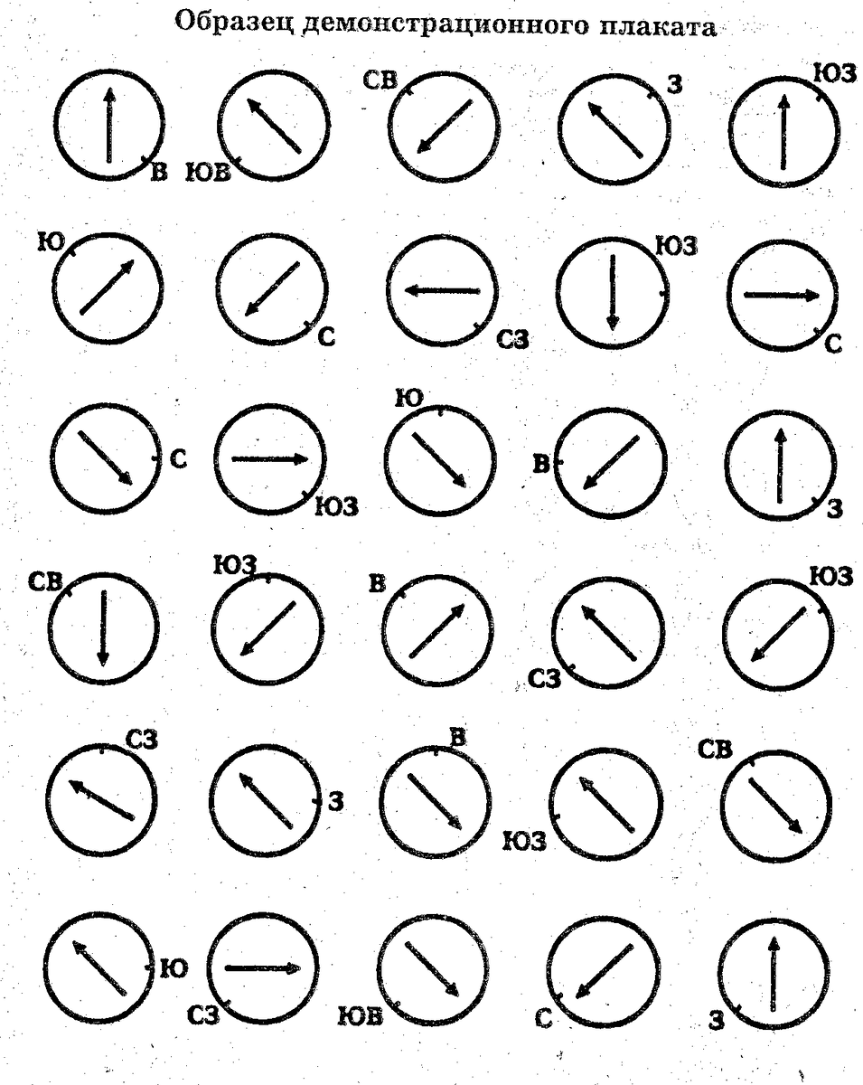 Методика предназначена для определения пространственных представлений. Поскольку существуют статистически значимые корреляции показателей пространственного представления с уровнем логического мышления, методика рекомендована для косвенной оценки уровня логического мышления. Методика используется с целью профотбора. Содержание методики: обследуемому предлагается на бланке 25 задач, в каждой из которых на схематически изображенном компасе обозначено одно из 8 направлений сторон света (С, Ю, В, 3, С—В, С—3, Ю—В, Ю—3) в переменной системе координат и стрелка, показывающая какое-то другое направление, определить которое относительно переменной системы координат и будет задачей испытуемого. После того как испытуемый мысленно определит направление компаса, он должен записать обозначение этого направления. Перед началом обследования, объяснив задачу испытуемому, необходимо разобрать один пример. Испытуемого следует предупредить, что поворачивать бланк для ориентирования по оси С—Ю нельзя.