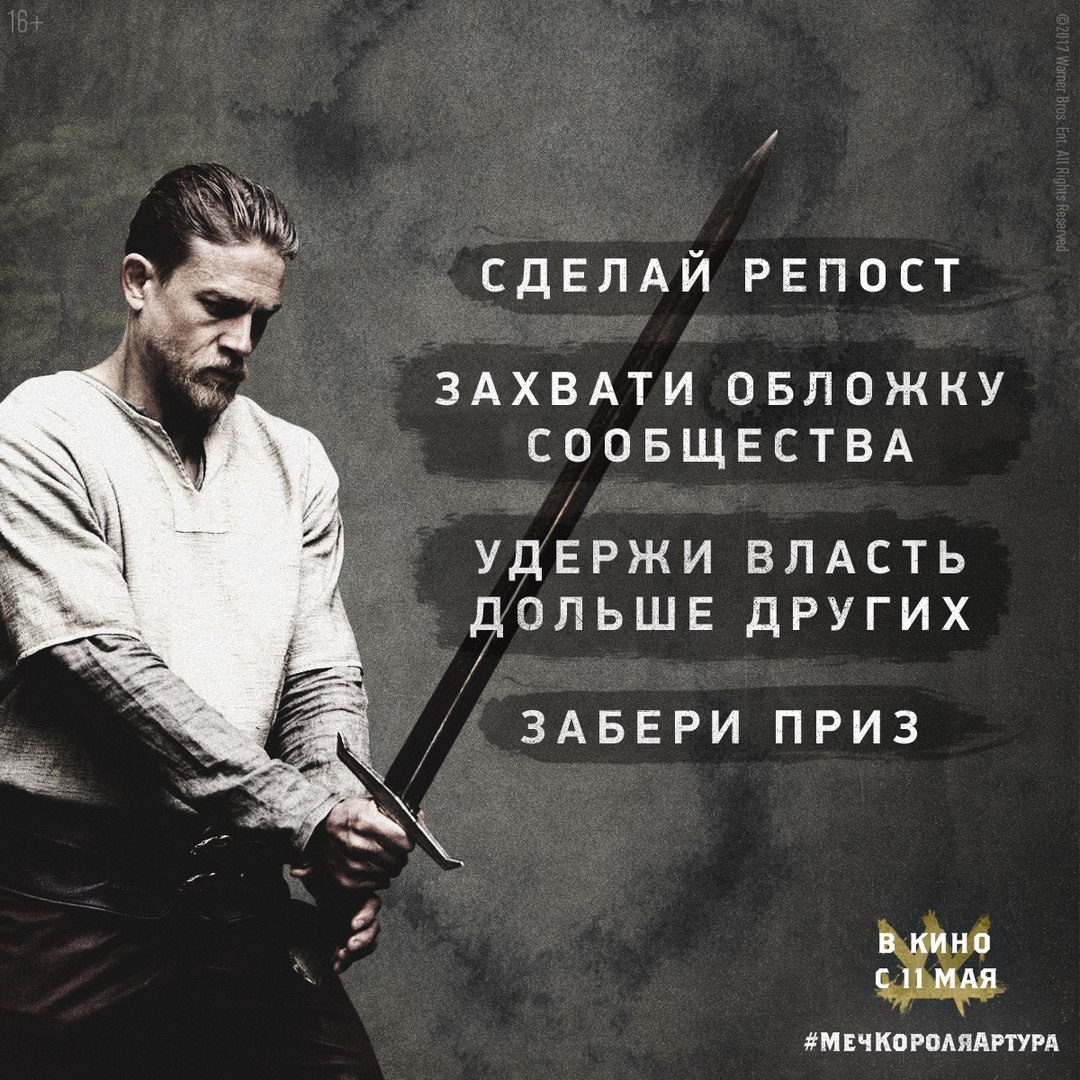 «Меч короля Артура» — захватывающий фильм о нелегкой судьбе средневекового воина, и для его промо мы придумали необычное использование динамической обложки. Сейчас эта механика входит в наш личный топ-3 инструментов для повышения активности, но тогда, полтора года назад, все началось с простой идеи — а что, если обложку можно будет захватить? Механика Мы дали каждому пользователю почувствовать себя в роли короля Артура и попробовать занять предназначенный ему трон — обложку сообщества Warner Ross. Russia. Для этого нужно было всего лишь сделать репост промо-поста.