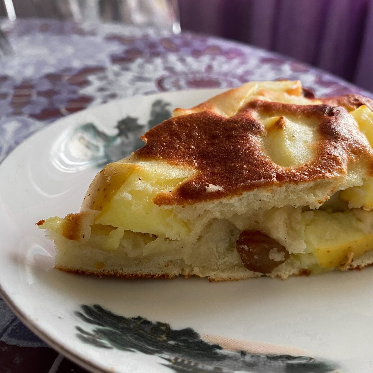 Яблочные пироги у меня всегда получались по-разному: то немного сыроватые, то слишком сладкие, то пережаренные. Отныне я готовлю по универсальному рецепту и больше не ошибаюсь. Сейчас научу и вас: Для шарлотки нам понадобятся: яйца - 3 шт сахар - 0/5 стакана мука - 1 стакан яблоки - 2 шт изюм - горсточка сода - щепотка корица, ванильный сахар - по вкусу 1. В большую миску разбиваем яйца, высыпаем сахар, щепотку соли и по желанию добавляем корицу и ванильный сахар. Тщательно перемешиваем. 2. В полученную массу добавляем муку. Можно частями, можно всю сразу, это не имеет значения. Перемешиваем до полного исчезновения комочков. 3. Нарезаем яблоки. Раньше я резала тонкими ломтиками, это занимало много времени, а в пироге они почти не чувствовались. Поэтому нарезаем на средние кусочки, так вкуснее. 4. Закидываем наши яблоки в тесто, добавляем промытый изюм и перемешиваем. 4. Если хотите, чтобы ваша шарлотка немного поднялась, добавьте щепотку соды. После этого не перемешивайте массу, остав