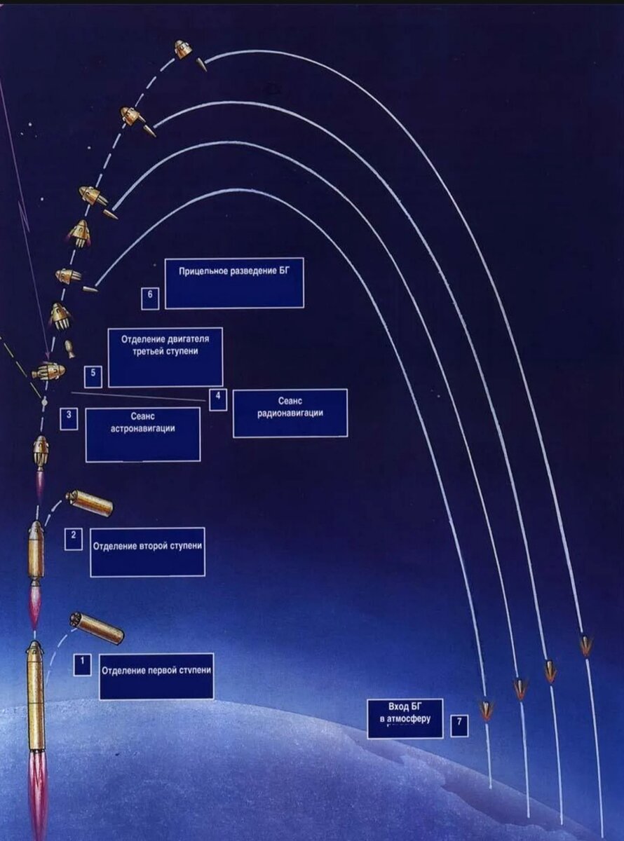 Еще «автобус» называют боевой ступенью, потому что ее работа определяет точность наведения боеголовки в точку цели, а значит, и боевую эффективность. Ступень разведения и ее работа — один из самых больших секретов в ракете. Но мы все же слегка, схематично, взглянем на эту таинственную ступень и на ее непростой танец в космосе.