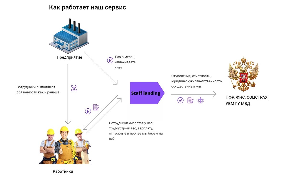Всё больше работодателей отдают свои обязанности выплачивать заработную плату и налоги за персонал компании Staff-landing. Так их расходы уменьшаются до 40% за одного сотрудника! Стафф-лэндинг – это сервис передачи персонала, юридических обязанностей посреднику, который выплачивает за Вас зарплату и налоги. Так работники трудятся на прежнем месте, но официально оформлены на другую организацию. Именно она берет на себя все обязанности, связанные с Вашими документами. «Мы забираем на себя всю ответственность за сотрудников. В случае проверок, судов или штрафов всё перекладывается на нашу компанпию. Так наши клиенты экономят не тысячи, а сотни тысяч рублей в год на налогах, а их сотрудники получают всё ту же заработную плату. Сервисом для трудоустройства своих супервайзеров пользуются такие компании как «Pepsi», «Dirol», «Nestle», «Danon», но и индивидуальные предприниматели не остаются в стороне», - говорит идейный вдохновитель сервиса Staff landing, Александр Потапенко. На данный момент