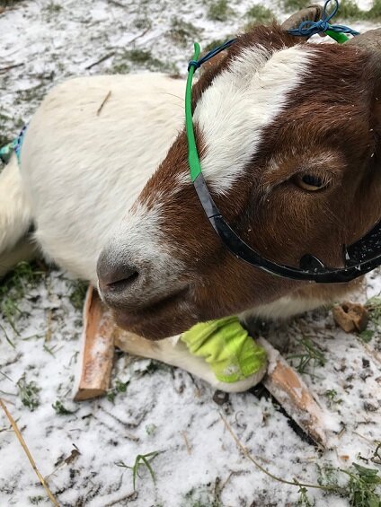 История спасения. Есть такие козы. Часть 2 Кусок проволоки. Вторая история случилась через пару месяцев после сломанного рога и имела более неприятные последствия. Двум козам из стада «удалось найти» кусок проволоки электропастуха, который остался на участке поля. Прошло пару дней, когда приехавший Крестьянин обратил внимание, что парочка как-то странно «передвигает копытами». Первую козу удалось поймать в тот же день - она таскала за собой метра три проволоки, за которую и удалось ее «выудить». А вот вторую - Нкозу отловить оказалось совсем непросто. У нее обрывок был очень мал, и за него поймать ее очень непросто - поэтому ловили два дня. Сначала простым способом «на сухарь». Но после двух неудачных попыток она больше «на сухарь» не ловилась. На кормушку с овсом она уже не реагировала - так как у нее пропала привычка «подходить к обеденному столу» вместе с другими козами. Оставался единственный и крайний вариант - загон Нкозы. Но дело было осенью, поле еще не покрыто снегом, и в ско