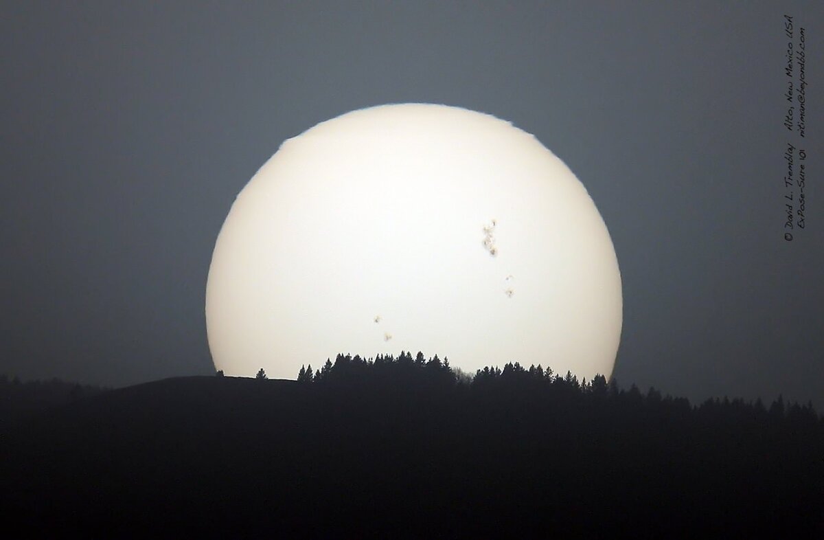 Вот, например, свежее фото с МКС. На нем отчетливо видно, что Солнце белое, ведь атмосфера уже не искажает его цвет. Еще, кстати, на фото приближающийся к Гавайям ураган Лейн.