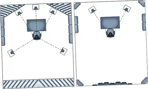 В музыке эти звуки сзади не востребованы. А вот в кино они нужны. Ведь даже просто идя по реальном миру и смотря вперед мы слышим звуки реального мира сзади.
