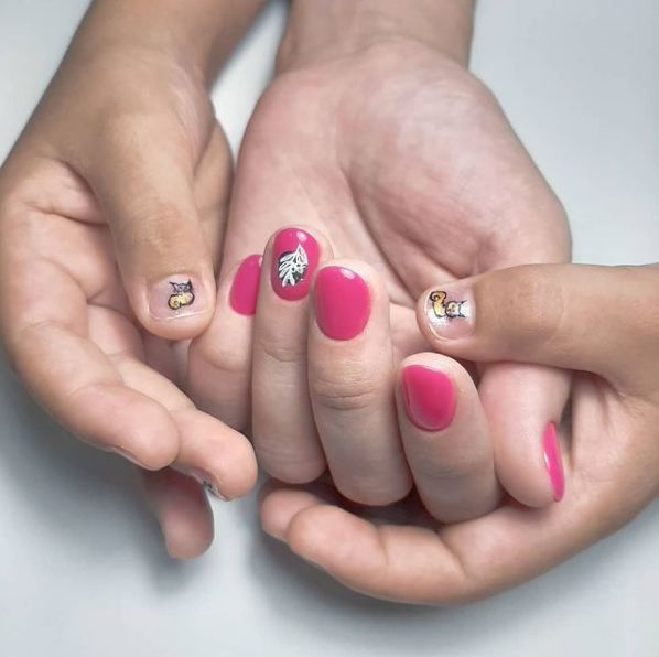 Всегда приятно же когда в салон можно прийти с детьми, а ещё и детям (девочкам) можно сделать приятные и на всю жизнь запоминающиеся ногти. Первый маникюр он самый важный в жизни девочки, если первый не понравиться то до свадьбы, как минимум, будет ходить без профессионального ухода за ногтями.