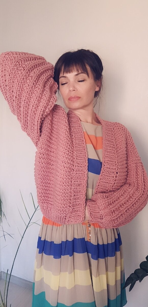 Всем привет) Лет пять назад, а может и того больше, когда стали появляться на рынке вязанных изделий кардиганы из толстой пряжи, мне было сложно вязать по заказу: как правило девочкам хочется определённый цвет и никто не отменял натуральность пряжи. Выбор был небольшой и было проще выкупил пряжу "что есть" и продавать готовое изделие. Сейчас многообразие поражает) не знаешь какую выбрать. Поэтому пробую все, что попадается и решаю стот оставлять её в своём арсенале или нет. По рекомендации попробовала Alize superlana maxi. Неплохая палитра, есть что выбрать) попробовала цвет 204, если не ошибаюсь тёмный пыльный розовый, у нас стоимость одного мотка 2,15$. В одном мотке 100 метров. Рекомендуемые спицы 8-10. Запрос у меня был на короткий бомбер с широкими рукавами. Вязала на спицах номер 9. Мои впечатления: * мне эта пряжа "скрипит" . Это от большого количества синтетики в составе. 75% акрил, 25%шерсть. * после ВТО изделие стало.... как бы это описать... рыхлое что ли...мне для тё