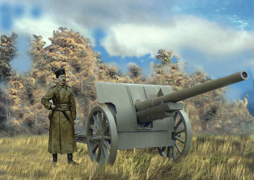 В 1910 году на вооружение русской армии принимается "42-линейная (107-мм) тяжелая полевая пушка". Орудие было разработано французской фирмой "Шнейдер". В середине 1910 года она прошла сравнительные испытания с пушкой Круппа аналогичного калибра. Оба орудия показали вполне удовлетворительные результаты, однако выбор был сделан в пользу пушки Шнейдера. 11 октября Главное артиллерийское управление заключило контракт с фирмой "Шнейдер" на изготовление 122 пушек. Перед войной военное министерство разместило заказы на производство 107-мм орудий на Обуховском и Путиловском заводах. Однако пушки отечественного производства стали поступать в войска только в середине войны.