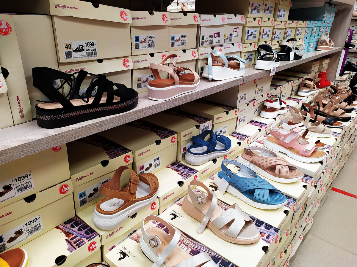 Решила присмотреть в KARI недорогую обувь для обычных прогулок в город или на работу. Благо сейчас в этом магазине хороший ассортимент от балеток, сандалий до босоножек. И пока прогуливалась между рядов, заметила вполне симпатичные модели, которые можно рассматривать к покупке. Предлагаю вашему вниманию летнюю обувь, которая попалась мне в это посещение KARI города Крымск. Синие босоножки на толстом среднем каблуке с перфорацией. Цена 999 рублей. Чёрные лакированные босоножки на низкой платформе с каблуком. Цена 799 рублей. Бежевые босоножки на оригинальном низком каблуке с закрытым носком. Цена 1699 рублей. бело-голубые босоножки на танкетке, с переплетением на подъёме. Цена 1899 рублей. Бежевые босоножки на низкой платформе, с декоративным узором и перфорацией. Цена 999 рублей. Голубые босоножки на танкетке, с декоративным бантом на носке. Цена 999 рублей. Голубые кожаные босоножки на танкетке, с перфорацией и застёжкой на липучке. Цена со скидкой 1999 рублей. Золотистые босоножки с