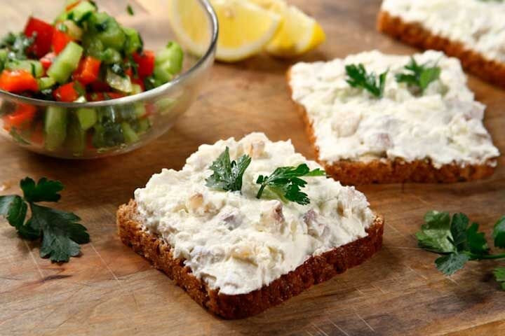 Из селедки и творога Берем одну средней величины сельдь, очищаем от костей и дважды пропускаем через мясорубку. В эту массу вводим желток 1 яйца (белок используйте для других целей) и 100 г творога. Пропустив эту смесь еще раз через самые мелкие ячейки мясорубки, вводим в нее 50 г маргарина и растираем его с этой смесью. Получается аппетитное творожно-селедочное " масло", отлично сочетающееся с ломтем хлеба. Хранить в холодильнике в закрытой емкости. Из любой копченой рыбы Некоторые сорта этих рыб, постные, неаппетитные, подолгу залеживаются на прилавках. Но желание и умение способны и этот продукт заставить "зазвучать" по-новому. Прекрасная бутербродная начинка получится у вас, если такую рыбку вы освободите от костей, дважды пропустите через мясорубку, прибавите сырой желток или два, 1-2 чайные ложки готовой горчицы и 1-2 ложки маргарина или масла и тщательно все это разотрете. Из копченой рыбы с брынзой 300 грамм рыбы потребует и брынзы в таком же весовом количестве (разумеется реч