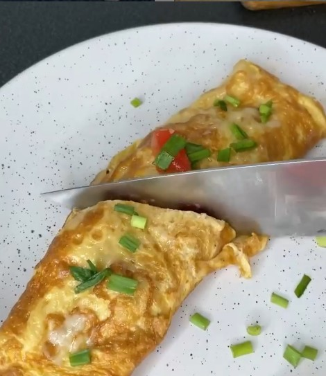5. Заворачиваем блинчик до середины и вновь вливаем оставшуюся смесь , добавляем помидоры и сыр. Формируем рулет полностью , выключаем плиту и накрывает крышкой немного потомиться.