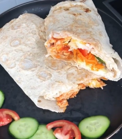 6. Заворачиваем лаваш и обжариваем с двух сторон (на сухой сковороде) до румяной корочки.