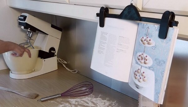 Вешалка с клипсами можно использовать как держатель кулинарных книг.
