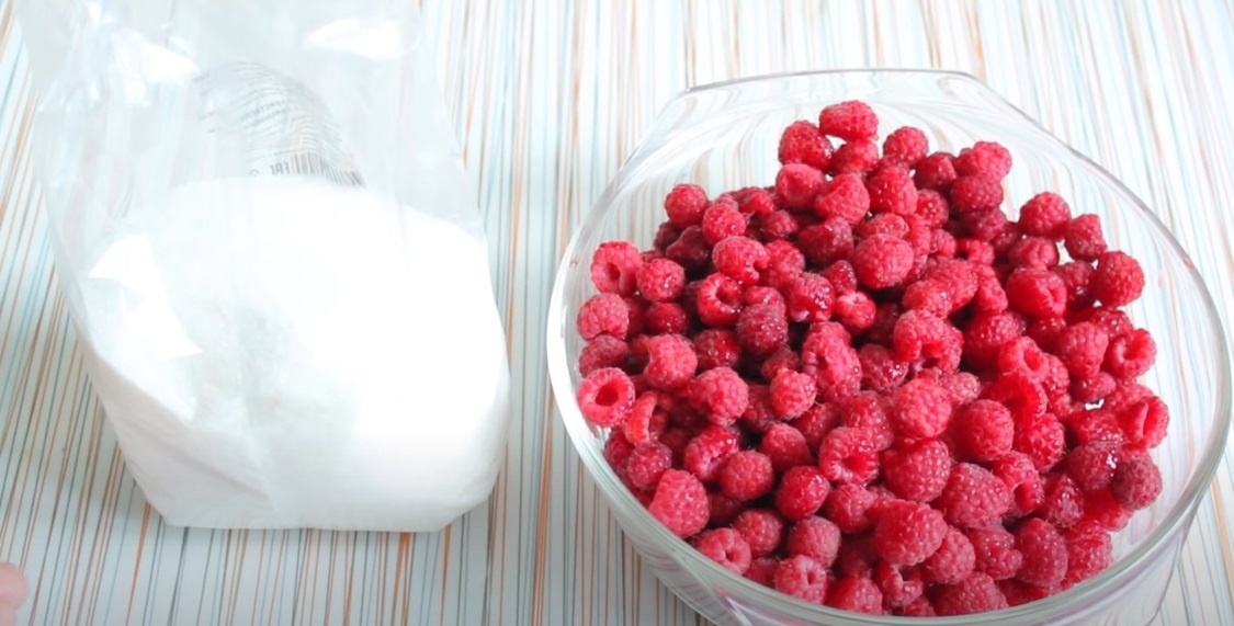Здравствуйте, сегодня будем готовить малиновое варенье на зиму. Варенье будем варить пятиминутку. Нам понадобится: 1) Свежая малина- 700г. 2) Сахар - 500г. На 700 г ягод я беру 500г сахара. Если вы будете брать 500г ягод, то нужно 300 г сахара. Если берёте 1кг ягод, то понадобиться 700 г сахара. Ягоды лучше брать свежие, непомятые и со своего огорода. Чтобы ягоды не нужно было мыть, поскольку малина не любит воду. Воду добавлять в варенье мы не будем. Малина- ягода сочная, она и так даст сок, главное этого дождаться. Первое что мы делаем, это высыпаем часть ягод в кастрюлю и присыпаем сахаром, потом нужно немного потрясти кастрюлю, для того чтобы ягоды лучше перемешались с сахаром. Затем высыпаем ещё малину и также посылаем сахаром и опять потряхиваем. После этого оставляем кастрюльку на 2-3 часа, чтобы ягода пустила сок и сахар немножко подтаял. Если вы готовите вечером можно оставить на ночь, для этого надо поставить кастрюльку в холодильник. После того как малина постояла, пуст