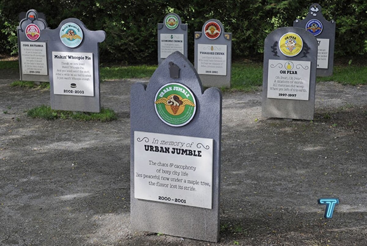 У популярной компании мороженого Ben & Jerry's есть свое «кладбище вкусов». Там стоят надгробные плиты для более ранних вкусов мороженого, которые больше не продаются, которые уже… умерли.