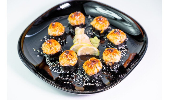 - Запеченные суши с мидиями, авокадо, сыром и угрем;