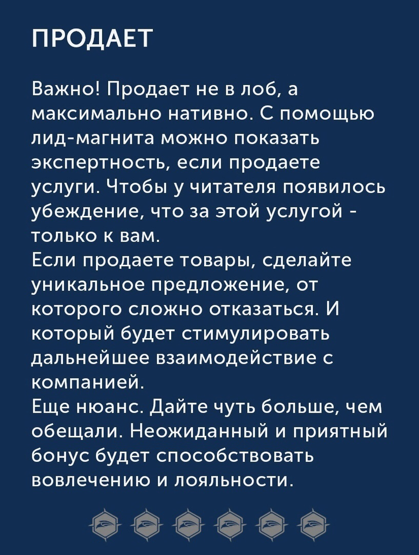 📩 Лид-магнит — это то, что чаще всего используют для сбора подписчиков в рассылку. Проще говоря, пробник продукта, который вы даёте взамен на контакты пользователя. Варианты форматов лид-магнита могут быть разными: чек-листы, шпаргалки, гайды, инструкции, шаблоны. Но содержание должно быть информативным, актуальным и понятным. Чтобы лид-магнит не разочаровал подписчика, а способствовал дальнейшим продажам, рассказываем о его важных признаках.