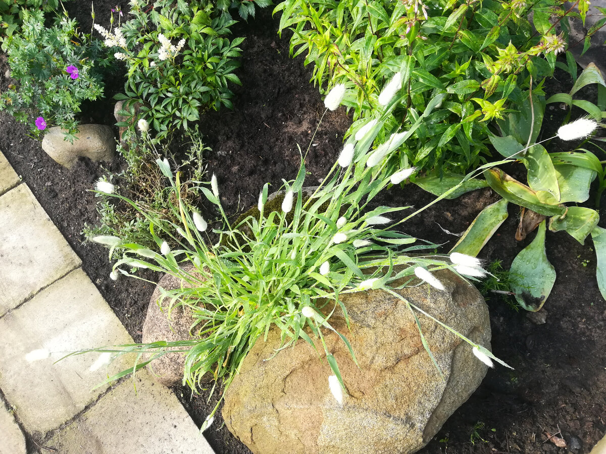 И снова, здравствуйте! И снова ночь! И снова уснула внучка! Скоро одиннадцать ночи! Темнеет! Белые ночи все ночнее. На улице +26! Днем было 34-36! От жары деваться некуда. А я про злаки... Вот удивительное дело, что мне, многолетних и диких мало? Ведь всяких уже развела! Нет, и однолетних захотелось попробовать! Я уже рассказывала, что в прошлом году вырастила кукушкины слезки. Травка из детства. Не очень понятно было, где она будет к месту, поэтому на пробу: вырастет и вырастет. Выросла вполне симпатичная травка. Я надеялась на самосев... Нет, он, конечно, может и был, но с моим стремлением все прополоть, прорыхлить весной, никакой самосев не выживет. В июле в одном месте выползли несколько стебельков. Если сеять или оставлять на самосев, то в конкретное место! Чтобы не потерять! Нынче решила расширить опыт и прикупила семена трех травок. Одна из них - зайцехвост. Классная оказалась травка! Ясколка с гипсофилой тоже выросли, но речь не о них. Вырос замечательный злак. У него, как э