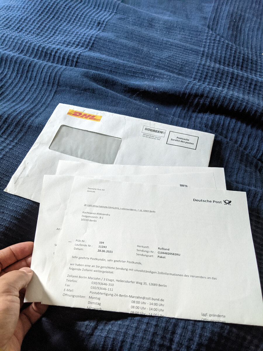 Буквально через 1,5 недели мне пришло письмо из немецкой таможни.