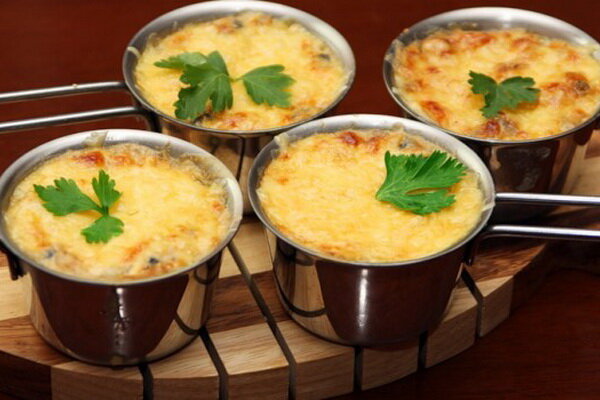 Лисички - замечательные летние грибы. Чаще всего жульены готовят с шампиньонами. Но когда вы возьмете вместо них лисички - вы получите один из самых вкусных видов грибного жульена. Выйдет потрясающее ароматное и вкусное блюдо. Можно использовать в качестве закуски или добавить немного курицы и получить вполне самостоятельное блюдо! Вперед! Время подготовки - 25 минут Время приготовления - 20 минут Порции - 4 Ингредиенты: Способ приготовления: Либо, что гораздо проще, добавляем тертый сыр в сковородку и перемешиваем до тех пор, пока не расплавится сыр. И подаем порционно в тарелку. Приятного аппетита!