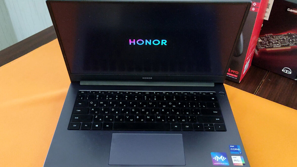 Дисплей на 14 дюймов, матрица IPS, разрешение 1920x1080. Матовое покрытие частично спасает от «отражений». Я специально старался использовать устройство в машине, на улице или где-то в кафе. Запаса яркости хватает, но без запаса. При ярком солнечном свете текст остаётся читаемым, но, например, в фотошопе уже не посидеть. Калибровка цветов традиционно для Honor очень хорошая, но вряд ли вы будете делать цветокоррекцию на маленьком дисплее. Присутствует защита для глаз Eye Comfort + сертификат TÜV Rheinland (50-процентное снижение воздействия синего спектра излучения и подавление мерцания), чего не было в предыдущем поколении.