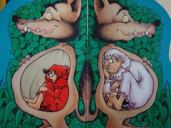 Деревенскую жизнь красной шапочки вряд ли можно назвать счастливой. Голодно, холодно, тяжелое детство: деревянные игрушки, прибитые к полу. Теперь понятно, почему в сказке отсутствует отец Красной шапочки. Он либо воюют, либо бастует, возможно, он просто пробегавший мимо солдат. O tempora, o m