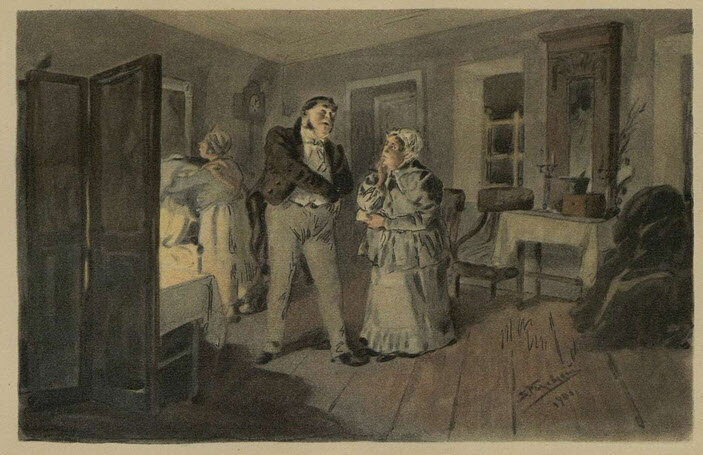 По пути он думает о девушке, взвешивая, какое у нее могло быть приданое и как скоро она «обабится» под руководством женской родни.