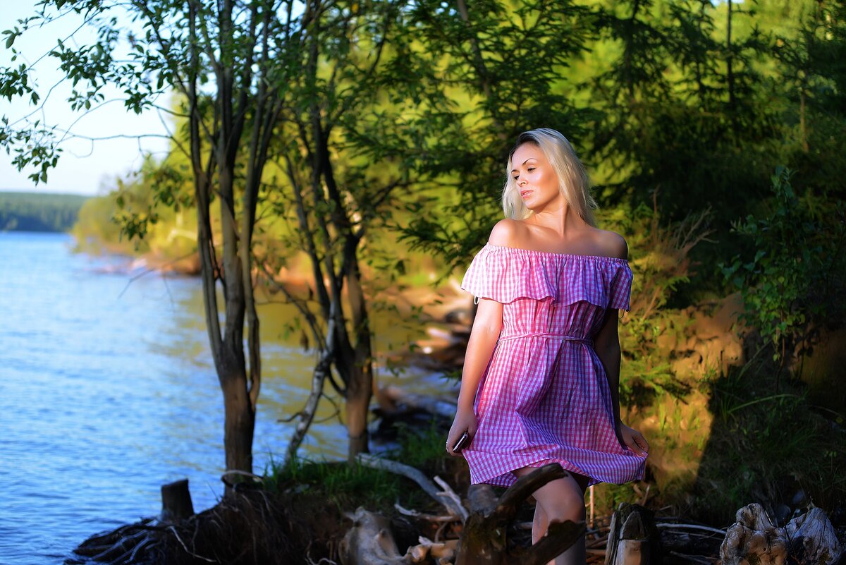 Девушка уже неделю как приехала на каникулы к бабушке, но отправиться на речку у неё получилось только сейчас.