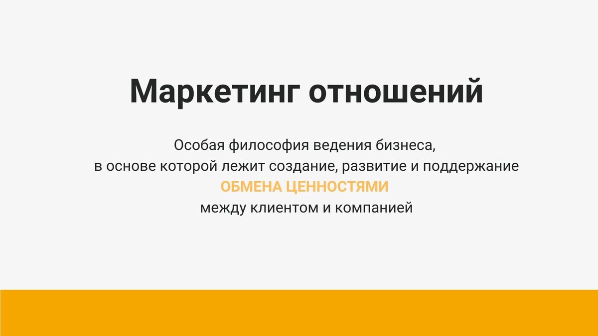 Похоже, мы дошли до той стадии, когда продаются даже отношения. И нет ничего ценнее и дороже, чем отношения. Стратегия развития отношений с клиентами, сотрудниками и партнерами становится не менее важной, чем финансовая или производственная стратегии. Продвинутые маркетологи даже придумали соответствующую теорию “маркетинга отношений”, инструменты развития отношений и рассчитали финансовую выгоду. И сразу становится очевидно, почему за услуги одной клиники люди готовы платить на 16-18% больше среднего по рынку, по какой причине одни турагенства во время пандемии не вылазят из судебных исков, а другие не имеют ни одной претензии от своих туристов. Почему первичный клиент всегда на 7-25 раз дороже повторного, пусть и даже потерянного. Как так получается, что про у одной корпорации индекс цитирования в СМИ и соцсетях в 4-5 раз выше, чем у конкурента при прочих равных условиях Интересно? Давайте разбираться, что значит маркетинг отношений и как выстроить бизнес - стратегию с учет