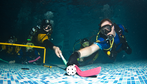 Довольно малоизвестный вид спорта, в отличие от других видов хоккея. Игра была придумана в Англии в 1954 году Аланом Блейком. Подводный хоккей должен был поддерживать форму дайверов в зимнее время, а также сохранять интерес к дайвингу. Первый чемпионат мира по подводному хоккею прошёл в Канаде в 1980 году, и теперь его проводят каждые два года. Команды в подводном хоккее состоят из 10 человек – 6 участвуют в матче, 4 запасных ожидают на поверхности. Каждый игрок носит подводную маску, трубку, ватерпольную шапочку, ласты, перчатку и управляет шайбой с помощью маленькой клюшки. Цель игры, как и в хоккее на льду, поразить ворота соперника. Примечательно то, что в подводном хоккее нет вратарей – чтобы защищаться и забивать используют командную работу и тактическое построение. Шайба в подводном хоккее в несколько раз тяжелее. Вес шайбы в хоккее на льду варьируется от 156 до 170 г, в то время как в подводной версии снаряд весит около 1,5 кг. Источник: https://znaniyaetosila.ru/samye-neob