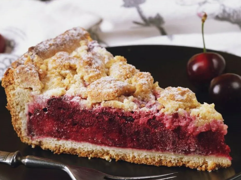 выложить ягоды (замороженные лучше обвалять в муку) готовим крошку ( масло муку и сахар перетереть , и получится крошка )им посыпать наш пирог
