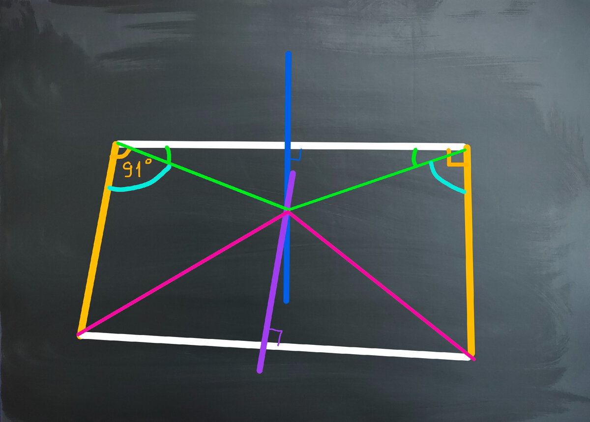 В предыдущей статье я доказывал, что 0=1. Ребята были впечатлены, смотрели на все это с огромными глазами, открытыми ртами и поехавшими крышами. Тем, кто не читал, и тем, кому лениво переходить по ссылке и читать, вот краткое содержание первой части. Мы провели с двух концов белого отрезка жёлтые отрезки одинаковой длины под углами 90° и 91° и соединили свободные концы жёлтых отрезков ещё одним белым отрезком. К двум белым отрезкам провели серединные перпендикуляры, доказали с их помощью равенство желто-зелено-красных треугольников слева и справа и, используя верхний зелено-белый равнобедренный треугольник пришли к выводу, что 91°=зелёный угол+бирюзовый и 90°=зелёный+бирюзовый углы. Таким образом 91=90, а если вычесть по 90 слева и справа, получается 1=0. И вроде бы все логично, пробелов в доказательстве нет. И даже если предположить, что точка пересечения серединных перпендикуляров лежит выше, ниже или даже на белых отрезках (тут я не буду рассматривать эти варианты, чтобы не перег