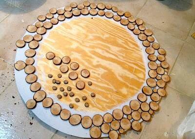 Домашнее зеркало достаточно просто оформить в сельском стиле. Работа потребует небольших затрат времени, но особенной сложности не представляет. Зеркало в дизайнерской рамке будет хорошо смотреться в гостиной, спальне или ванной комнате. Для работы надо подготовить некоторые инструменты и материалы. Понадобится влагостойкая фанера толщиной не меньше 8 мм. , ветки дерева, лобзик, шуруповерт, универсальный клей, круглое зеркало, ножовка и лак. Здесь зеркало диаметром 550 мм. , но возможны и другие варианты На фанере очерчивается контур зеркала. Затем чертится большая параллельная окружность. Отступ от кромок зеркала 100 мм. . Фанера выпиливается по внешней разметке с помощью ручного или электрического лобзика. При подготовке расходных материалов надо обратить внимание на клей. Для оформления рамки можно использовать как столярный, так и универсальный клей. А для приклеивания зеркала нужен специальный клей, в составе которого нет ацетона и других едких веществ. Иначе клей может разрушить