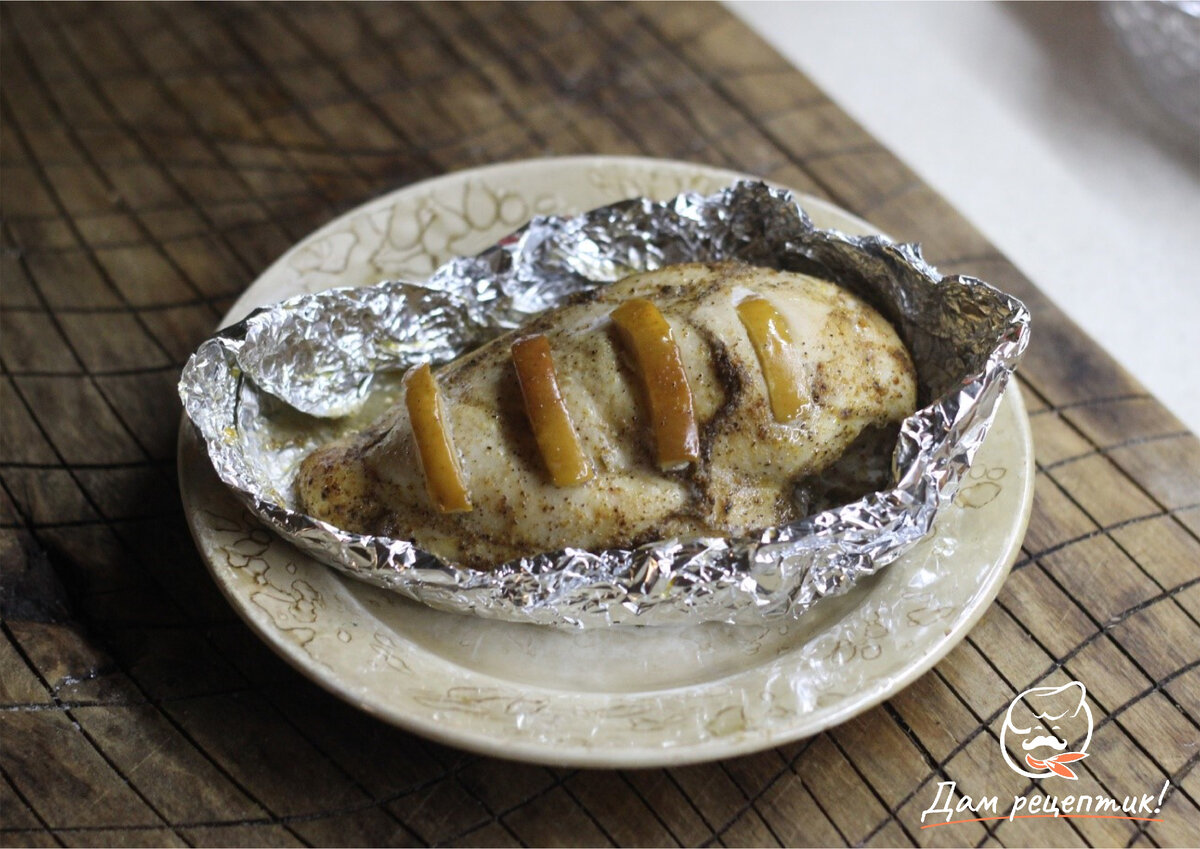 Куриная грудка с яблоками – это вкусный и быстрый в приготовлении ужин, который можно дополнить любимым гарниром или холодной закуской. Курочка в фольге получается сочной, в меру пряной, с тонким сливочным вкусом и нежным ароматом специй.
