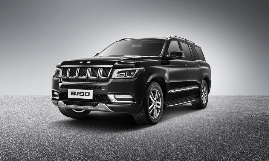 На китайский рынок вышел автомобиль, скопированный с Mercedes Benz GL-class кузова X166 – BAIC BJ90. Китайский вариант во многом превзошел оригинал. На этапе проектирования его согласовали с Мерседес. За идею взяли GL-класс, а потом его доработали и улучшили. Первично машина должна была стать транспортом для чиновников, но позже производитель решил выпустить его в массовое производство. Сразу бросается в глаза сходство с Мерседес, если смотреть сбоку, но решетка радиатора явно пришла от Jeep. Бампера сделали более массивными, изменили оптику (ксенон) и как любят китайцы на хром не поскупились. Габариты: Длина – 5171 мм Ширина – 1995 мм Высота – 1860 мм Колесная база – 3100 мм Клиренс – 200 мм Моторы: 1. 3 литра турбированный 333 лошадиные силы и 480 нМ 2. 4 литра турбированный 422 лошадиные силы и 600 нМ Оба этих двигателя производства компании Мерседес. Коробка автомат и 9 ступеней. Привод естественно полный, но теперь добавили пневму. Подвеска независимая двухрычажная, тормоза диско