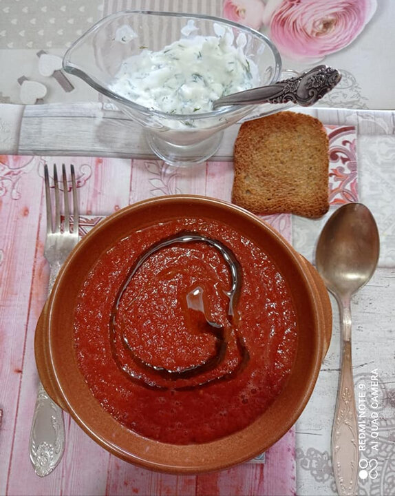 Холодный суп гаспачо и «полуфабрикат» из фасоли и нута