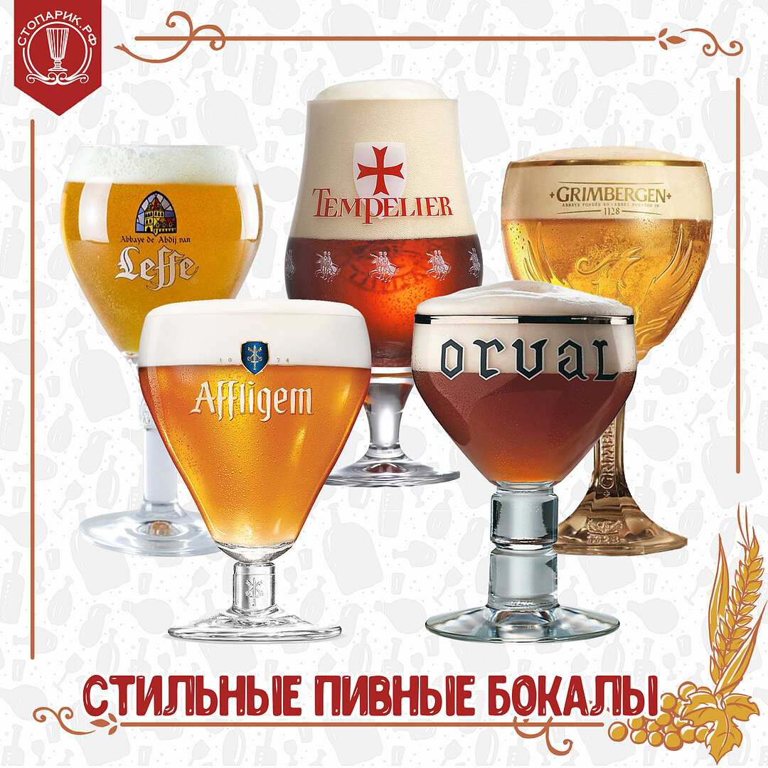 Пивные бокалы – это неотъемлемая часть культуры питья. Пивной бокал несёт в себе не только эстетическую составляющую, форма бокала толщина стекла и его ножка также имеют большое значение: узкая горловина способствует удержанию пены, благодаря конической форме аромат напитка воспринимается лучше. Пивные мировые бренды не зря стараются над оригинальностью. Рассмотрите несколько примеров пивных бокалов от известных пивоварен. Бокал Grimbergen Бокал этого производителя имеет чашевидную верхнюю часть на тонкой ножке с широким основанием. Бокал украшен декоративным элементом. Благодаря широкому верху, из такого бокала удобно делать большие глотки. Идеален для: бельгийских IPA, тёмных Элей, Трипеля, немецкого Бока. Бокал Tempelier Благодаря овальной чаше и сужающемуся круглому основанию – идеален для бельгийского карбонизированного пива. Имеет массивную устойчивую ножку. На бокале изображена символика тамплиеров. Идеален для: всех видов бельгийского пива. Бокал Orval Эффектная чаша на толстой