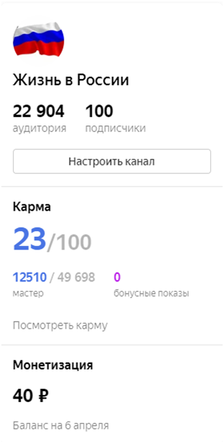 Здравствуйте, уважаемые читатели канала «Жизнь в России». Статья будет написана по состоянию на время полтора года назад. Радостная новость наступила около недели назад – на нашем канале появилась первая сотня подписчиков. Все благодаря вам, многоуважаемым людям, которые щелкаете по моим публикациям. Соглашусь, что многие статьи не особо зашли у читателей, даже если не следить за негативными отзывами, на которые последнее время уже перестал обращать внимание. Почему только сейчас? Сейчас объясню, почему 100 подписчиков появилось 8 апреля 2020 года (среда), а статья об этом вышла сегодня. Заодно раскрою вам свой небольшой секрет ведения канала «жизнь в России». Дело в том, что каждая новая написанная статья добавляется в список «запланированных» на день вперед. То есть публикуется по одной статье в день в 6 утра по Пермскому времени (4 утра по Московскому). Это сделано для того, чтобы вы с утра могли прочитать новую публикацию. Стараюсь делать так, чтобы запланировано было 5-7 публикац