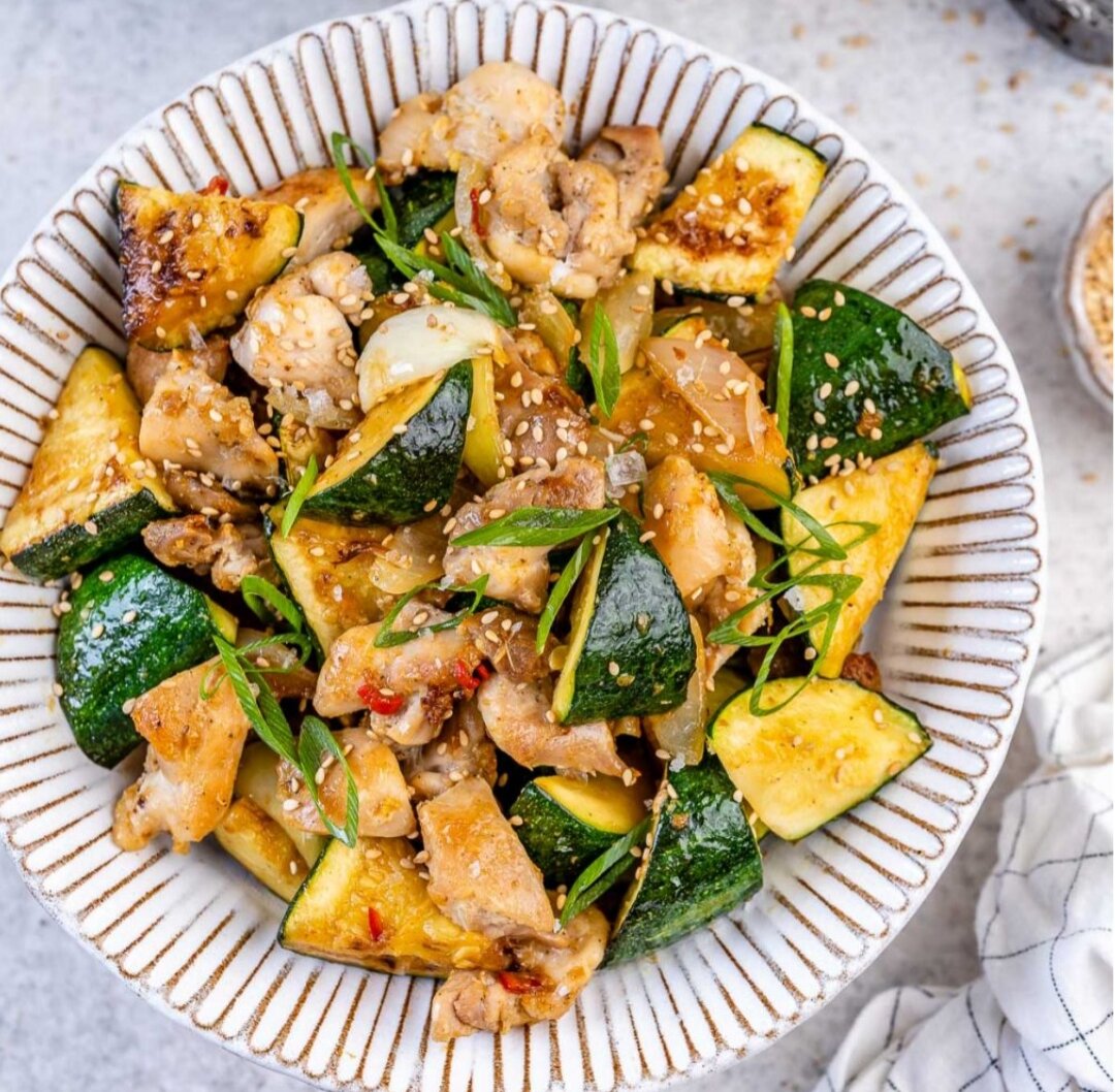 Вы, наверняка уже имеете в своей копилке множества рецептов для приготовления курицы. Но поверьте, такого аппетитного рецепта курочки с кабачками Вы ещё точно не встречали. Главное, Вы не пожалеете, если решитесь приготовить на ужин или обед данный рецепт. Этот рецепт хорош тем, что в приготовлении его нам необходимы два основных распространенных ингредиенты - это курица и кабачки. Готовьте, экспериментируйте и наслаждайтесь! Ингредиенты, которые нам понадобятся: ✅3 зубчика чеснока. Обязательно измельчить ✅1 луковица. Нарезанная кубиками ✅0,5- 1кг куриного филе ✅1ст.л имбиря. можно использовать молотый имбирь, но я рекомендую измельчить свежий. ✅1шт красный острый перец. Очистить от семян. Нарезать. ✅5шт средних,молодых кабачков. Я рекомендую кабачок вместе с кожурой и семенами. Ведь так намного полезнее. ✅50мл соевого соуса или кокосового ✅1 ч.л кунжутного масла ✅Зелёный лук по вкусу ✅Семена кунжута для украшения Приготовление: Готово! Осталось украсить и подать на стол! Приятного