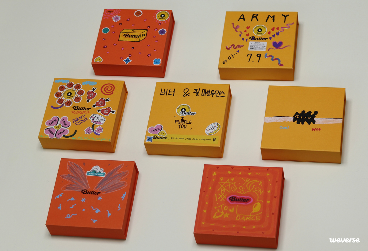 Добро пожаловать в сканы фотографий с только что вышедших альбомов BTS - Butter! Совсем недавно парни выпустили ролик в котором оформляли альбомы Butter, в своей стилистике. Сие художество можно наблюдать на фотографии выше. Интересный факт: Мин Юнги (Suga) оставил свой номер телефона на обложке альбома! Стафу пришлось замазывать цифры, чтобы данные не утекли в сеть. А какие у вас предположения, кто какой альбом оформлял? Так же из этого ролика - распаковки, мы узнали, что парни делали все фотографии из альбома еще в марте, а выпустили альбом только в июле! Ну и конечно же, спасибо всем тем Арми, которые купили альбомы БТС, и выложили сканы фотографий от туда в интернет!