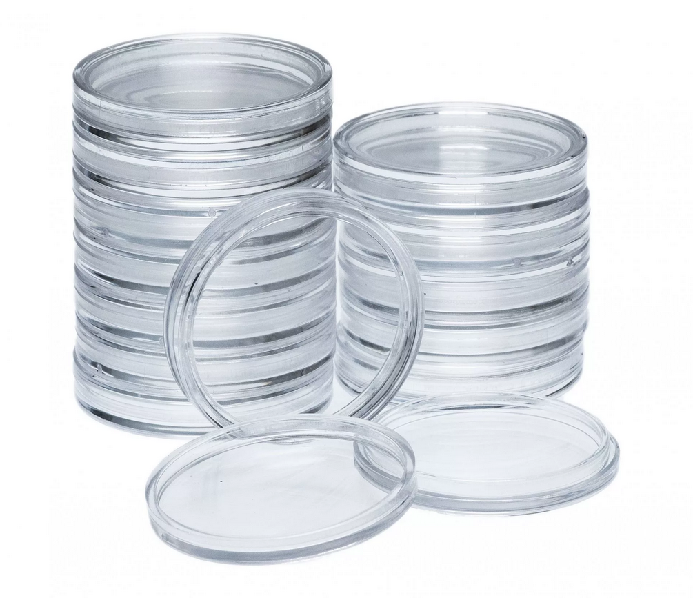 Капсула является очередной вариацией чехольчика упаковки для монеты: она позволяет защитить монету от окружающей среды, шаловливых пальчиков, да ещё и оставаться при этом эстетически привлекательной, между прочим. По внешнему виду представляет из себя прозрачную пластиковую упаковку круглой формы, состоящей из двух частей: самой капсулы и крышечки. Форма, кстати, бывает не только круглой, но об этом в другой раз.