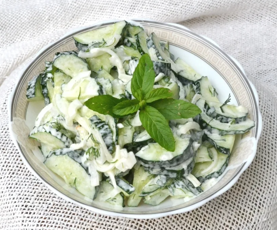 Ингредиенты:2 огурца15 маслин без косточек1/2 лимона100 г сыра (гауда, ламбер и т.д.)майонезПриготовление:1. Огурцы нарезать небольшими брусочками, маслины - колечками, а сыр - кубиками.2. Все подготовленные ингредиенты смешать, сбрызнуть лимонным соком и заправить майонезом.