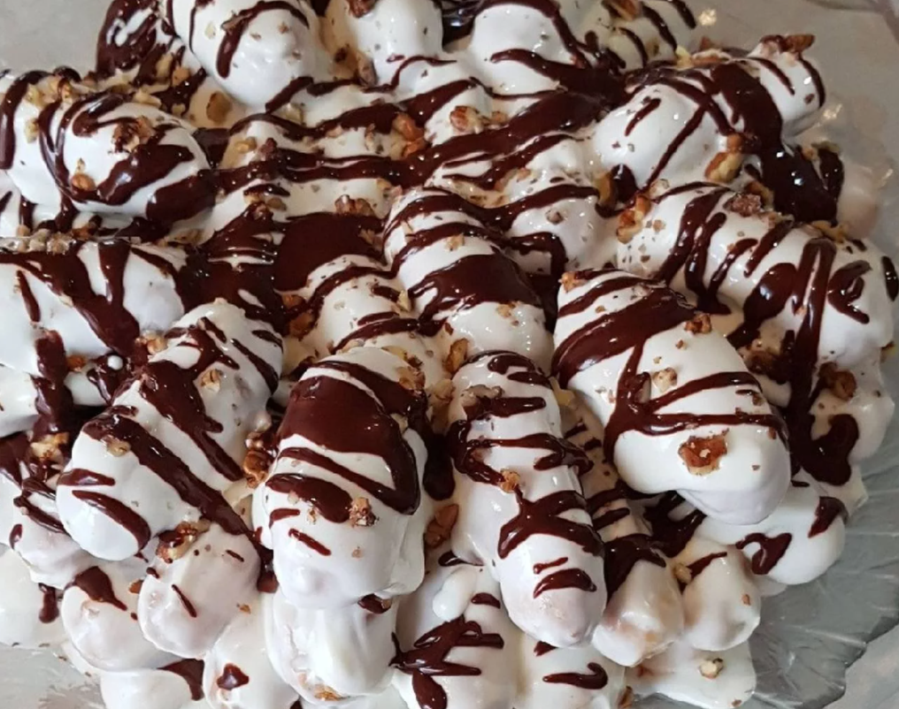 Испеченные заварные основы обмакнуть в крем и выложить на блюдо в форме горки (я исполь