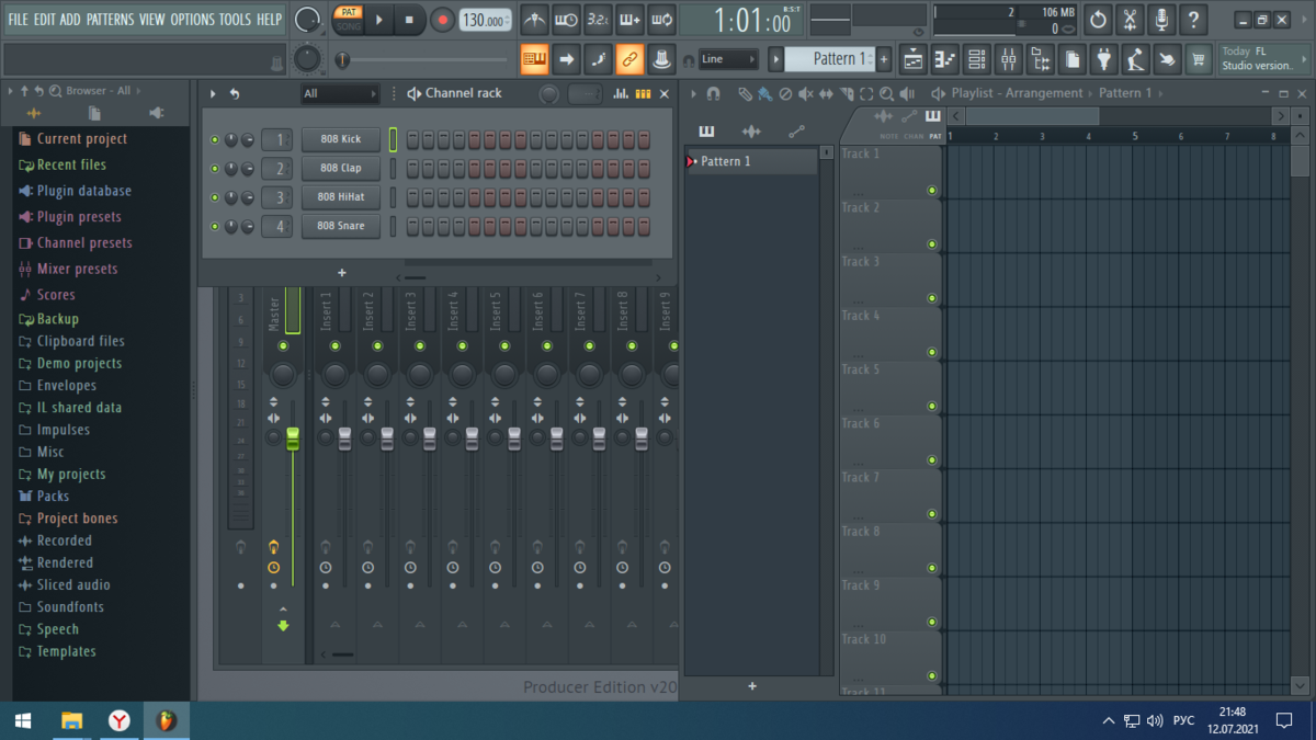 Вы наверное слышали в TikTok'е замедленные и атмосферные треки, но никак не могли найти их, сейчас я расскажу как сделать самому такое творчество абсолютно на каждый день, потратив на это 5 минут . Начнем с того что нам понадобится программа FlStudio 20, в ней мы и будешь делать наши проекты. Скачиваем и устанавливаем. При первом запуске у вас вероятнее всего будет открыт проект от Fl Studio, чтобы его удалить вам нужно сверху слева нажать на File > New (Basic 808 with limiter) и проект уйдет.