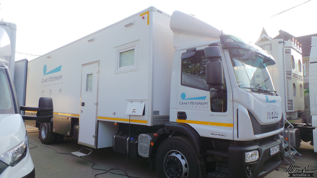 Мы с Вами настолько привыкли к различным прямым трансляциям. На YouTube уже, наверное, только самый ленивый их не проводил. Но для того, чтобы получить качественную картинку (качественно снятую и качественно смонтированную в прямом эфире), необходимо нечто большее, чем видеокамера и ноутбук. Прямая трансляция обеспечивается с помощью различных передвижных телевизионных комплексов. Нам удалось немного взглянуть на такой комплекс под названием «Нева». Это целых три машины, первая – непосредственно сама передвижная телестанция с тягачом. Вторая машина – вспомогательная, в которой хранятся камеры, кабели и все технические средства для обеспечения прямого эфира. И машина-генератор с прицепом. «Экипаж» составляет — 11 человек. Внушительно! Пока остаётся мечтой заглянуть внутрь такой подвижной телестудии, но как нибудь мы сделаем это обязательно!