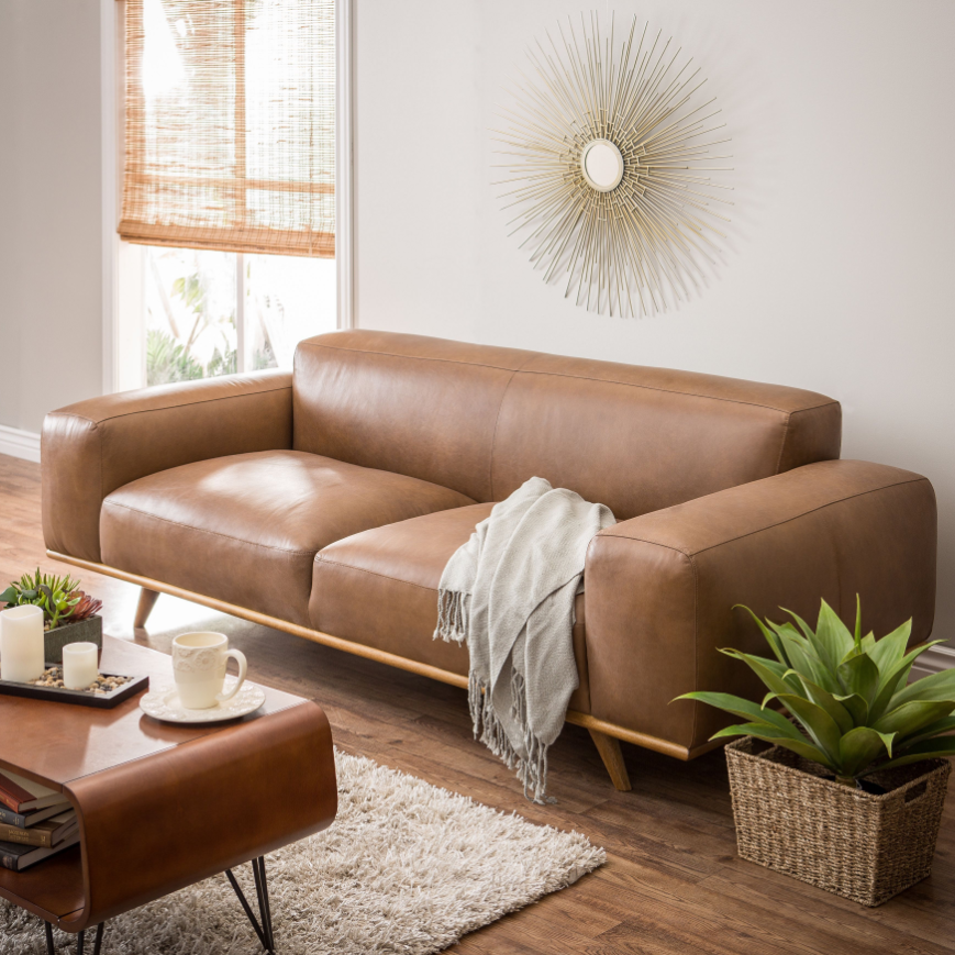 Хотя светло-коричневая кожаная мебель - это земляной тон, однородный практически с любым другим цветом, вы можете сделать сознательный выбор, чтобы подчеркнуть нейтральные тона или контрастировать с ними, используя яркие цвета аксессуаров. Используя кожу в качестве основы, аксессуары можно менять так часто, как это необходимо, чтобы создать желаемое настроение. Группа фиолетовых бархатных подушек на коричневом кожаном диване выглядит игриво, в то время как бледно-зеленый хлопковый плед успокаивает. Несколько цветов в ковре, таких как нежно-голубой, бледно-розовый и морской, создают вечную комбинацию, напоминающую мягкие оттенки неба на закате. Текстура Контрастируйте с текстурой кожи, используя такие ткани, как хлопковые подушки и шторы, шелковые портьеры или шерстяной ковер. Набросьте мягкий шенилл или свитер из смесовой ткани на подлокотник дивана, чтобы облокотиться на него, читая любимую книгу. Уравновесьте эти текстуры стеклянным или каменным журнальным столиком. Составьте пару д