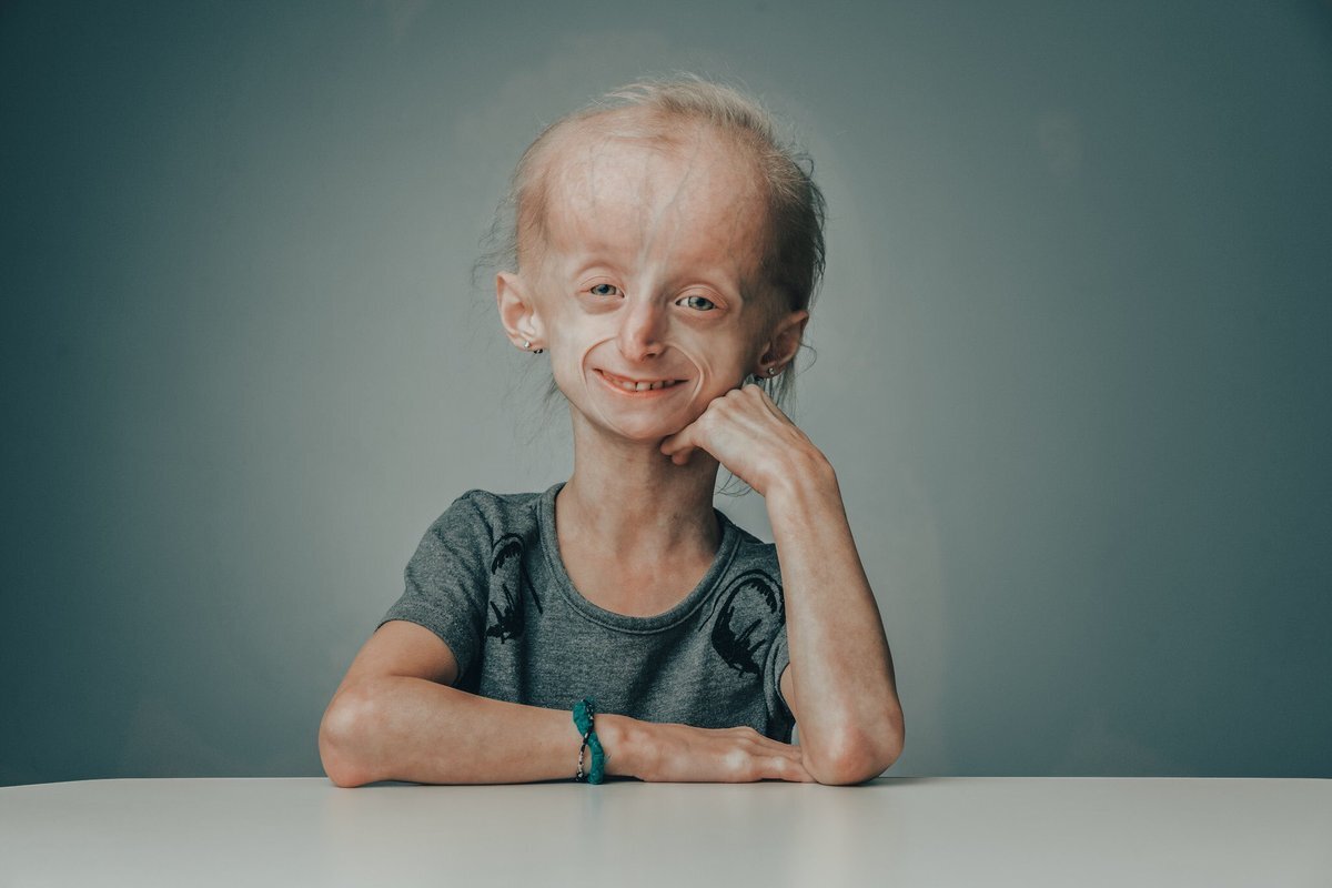 Прогерия – редкое генетическое заболевание, характеризующееся преждевременным старением организма, соответствующими изменениями внутренних органов. Проявляется гиперпигментацией, истончением и утратой эластичности кожи, поседением и выпадением волос, увеличением размеров черепа, уменьшением его лицевой части, экзофтальмом, развитием атеросклероза сосудов, инфаркта и фиброза миокарда, остеопороза, сахарного диабета, формированием злокачественных опухолей. Диагностика основана на сборе клинических данных, лабораторном исследовании ДНК. Лечение направлено на устранение симптомов заболевания: профилактику и терапию атеросклероза, инфаркта миокарда, диабета, остеопороза, рака.