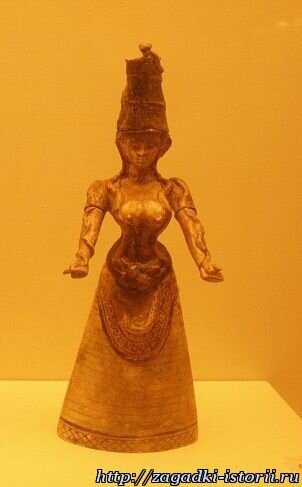 В марте 1900 года английский археолог Артур Эванс, хранитель музея в Оксфорде, начал свои раскопки на Крите. Помимо множества бесценных артефактов, ему удалось отыскать три удивительные фаянсовые статуэтки, которые получили наименование «Богини со змеями»... Остров Крит давно привлекал исследователей всего мира. Уже на третий день раскопок Эванс записал в своем дневнике: «Исключительное явление - ничего греческого, ничего римского...» Действительно, культура Крита оказалась весьма своеобразной и самобытной. Одними из самых замечательных находок Эванса оказались оригинальные статуэтки - так называемые «Богини со змеями». Эти статуэтки были найдены археологом спустя три года после начала раскопок - в 1903 году. Они находились в тайнике под полом одного из дворцовых помещений. Богини изготовлены из фаянса и покрыты стеклянной глазурью, окрашены яркими порошками в красновато-коричневые и желтовато-зеленые цвета. Позже они подверглись обжигу, в результате чего приобрели стеклянный блеск. Сч