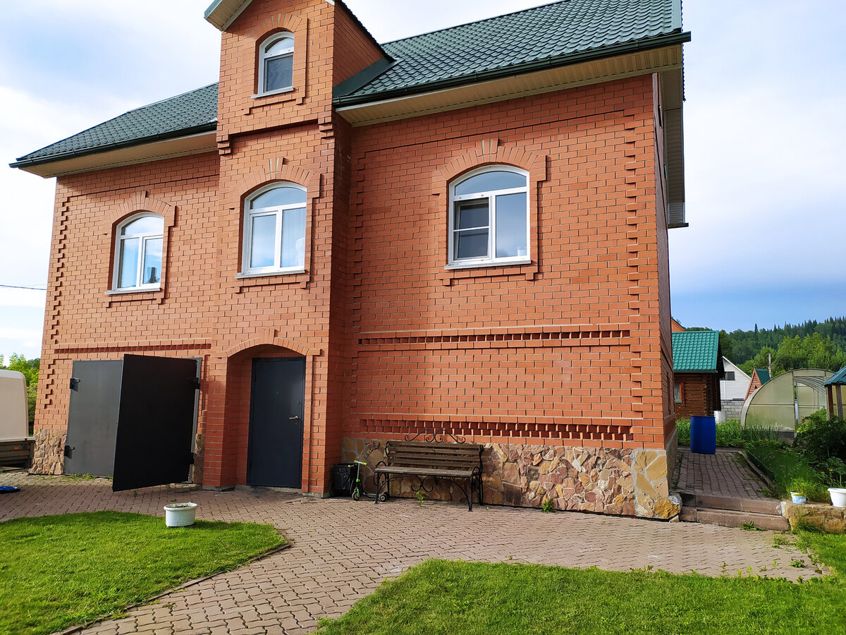Здравствуйте! Один из заказчиков купил дом. Красивый, мощный, кирпичный. Вроде все хорошо, купил, живи. Это ж вам не каркасник, который сдует, сгниет, муравьи и прочий животный мир сьест за десять лет. Да и на картинке, фото все вроде отлично. Но, как говорится большой дом, проблемы больше. Свесы крыши маленькие. То есть даже при небольшом ветре вся вода с крыши течет по кирпичу. А это уже появляются высолы, зеленые поддтеки, а в некоторых местах и мох. И этот кирпич уже обработан пропиткой гидрофобизатором. Заказчик просит теперь почистить и обработать еще на раз. Честно говоря, не наш профиль и смогу ли я найти смежников, большой вопрос. Вот тут хорощо видно и мох возле оконного слива и кирпич, лицевая часть которого уже отваливается. И это всего лишь одно место. И как такое отремонтировать, вопрос. А вот и несмываемые даже керхером с химией, пятна на цоколе. Вроде сделано все хорошо, но поверьте, проблем с кирпичным домом не меньше чем у брусового, каркасного, или дома из газобл