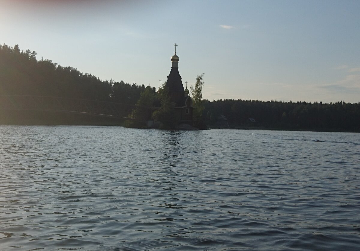 Удивительная церковь возвышается посередине реки. Она построена на скале, которая выступает из воды. Еще совсем недавно, что бы попасть в нее летом, нужна была лодка. Это единственный храм, который уместился на столь крохотном островке, точнее скале. Площадь всего острова не больше ста квадратных метров. Появилась она здесь в 2000 году, и почти сразу заняла место в книге рекордов. Очень живописное место. Окружена со всех сторон водой, названа в честь Андрея Первозванного - он является покровителем всех моряков. На каждом корабле, Андреевский флаг является обязательным. Очень красивое и тихое место. Совсем недалеко, мы каждое лето отдыхаем с палатками. И в этот раз пришли сюда на лодке, прямо от нашего лагеря. Видео специально для вас, что бы вы могли увидеть эту красоту не только на фотографиях. Совсем недавно тут появился мост, и посетить церковь стало проще. Хотя, на мой взгляд, он немного испортил вид. Церковь вполне действующая. По договоренности там можно провести церемонии венч
