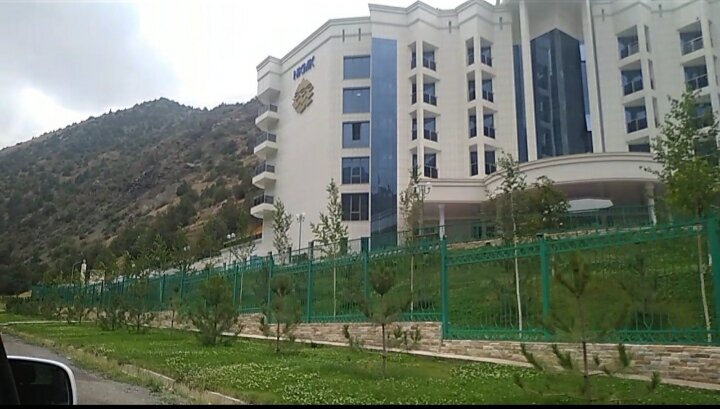 На самом верху снимка видно белое полукруглое здание, это и есть санаторий " Заамин". Летом он переполнен и найти место невозможно, даже зимой он бывает полным, там есть ещё и канатная дорога, и для желающих частники понастроили маленькие гостевые дома, можно жить в этих домах и получать лечение в санатории, только вот какое лечение там дают я не знаю.